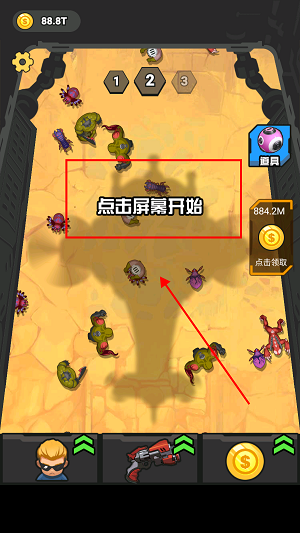 1、打开末日打僵尸app,点击“点击屏幕开始”。