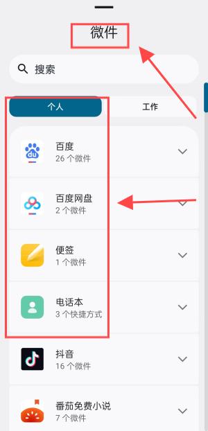 4、微件可以把自己常用软件添加到桌面。