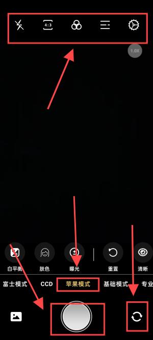 1、打开软件后,可以调成苹果模式,点击拍照。