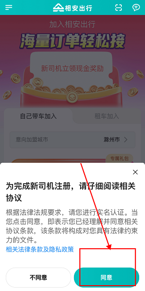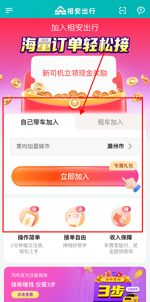 1、打开相安出行app,选择加入方式点击“立即加入”。