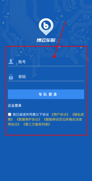 2、可以输入账号和密码点击“车队登录”。