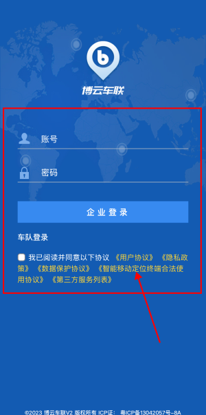 1、打开博云车联v2app,出现以下页面。