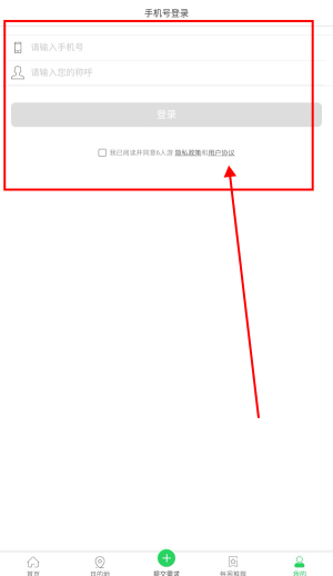 2、输入手机号和称呼进行登录。