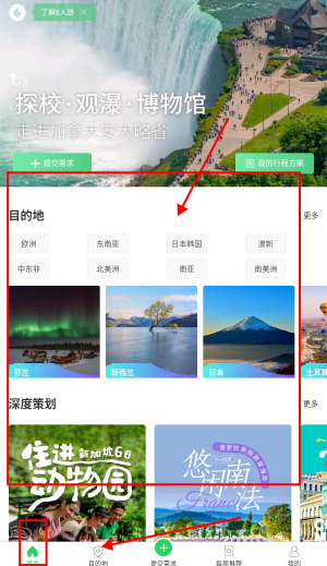 3、在首页可以查看到目的地、深度策划等信息。