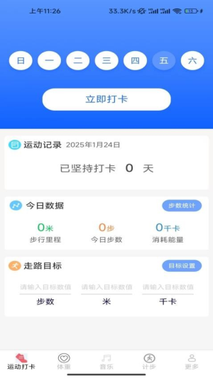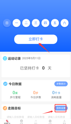 1、打开软件,进入界面,点击立即打卡,目标设置。