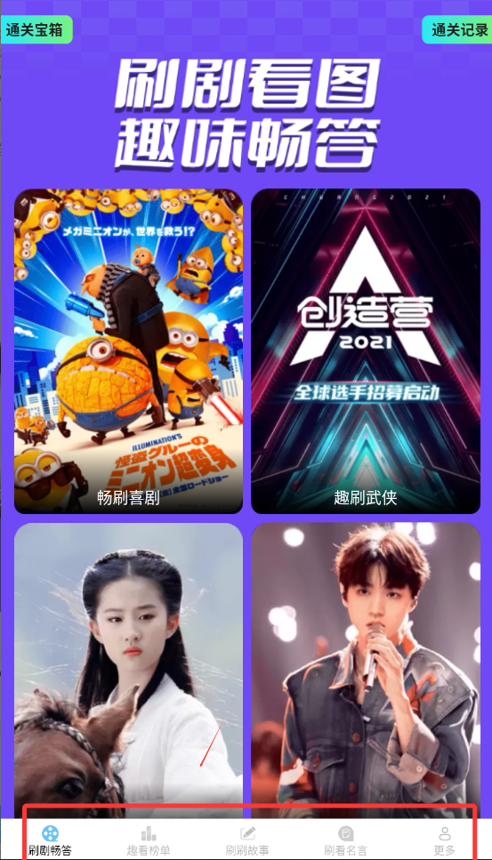 1、答题闯关模块包含多种题型,如看图猜剧,名言填空,知识问答等,难度逐步提升,适合长期挑战。