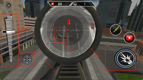 2、左边是调整放大倍率和开镜,右边是开火及换弹,玩家需要找到敌人并且击杀他们。