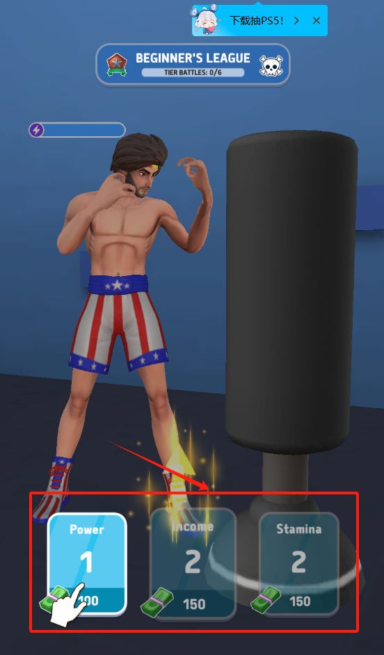 2、进入游戏先赚点钱买装备,打打沙包强化肌肉。