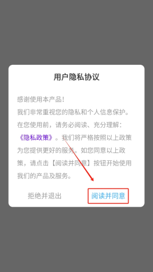 1、点击下方“阅读并同意”进入应用。