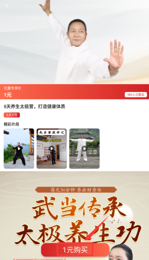 4、定期更新的节令养生专题和大师直播课,让传统武术焕发新的时代活力。