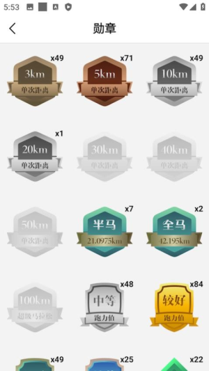 3、成就系统设置阶段性运动目标,完成挑战可获得虚拟勋章奖励。