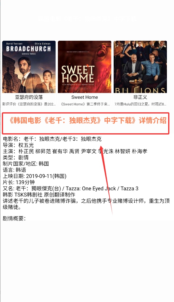 2、进入影视内,可以点击进入选项选择喜欢的电影,进入后可以看到电影简介。