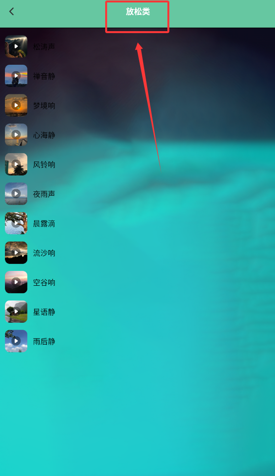 3、在心情烦闷时,可以点击放松类音乐,往下翻阅点击需要放松音乐即可。