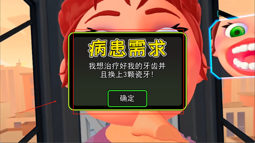 1、开始游戏后,第一位病人会自动进入诊室,玩家需使用探针、镊子等工具检查牙齿状况,并根据诊断结果选择合适的治疗方式。