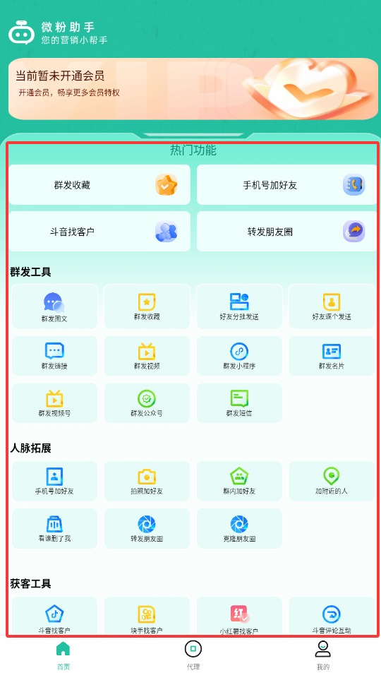 1、打开微粉助手,在主页的功能列表里,挑个你想用的功能点进去。