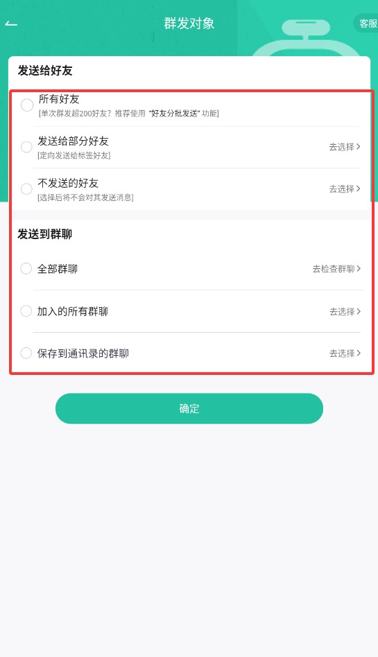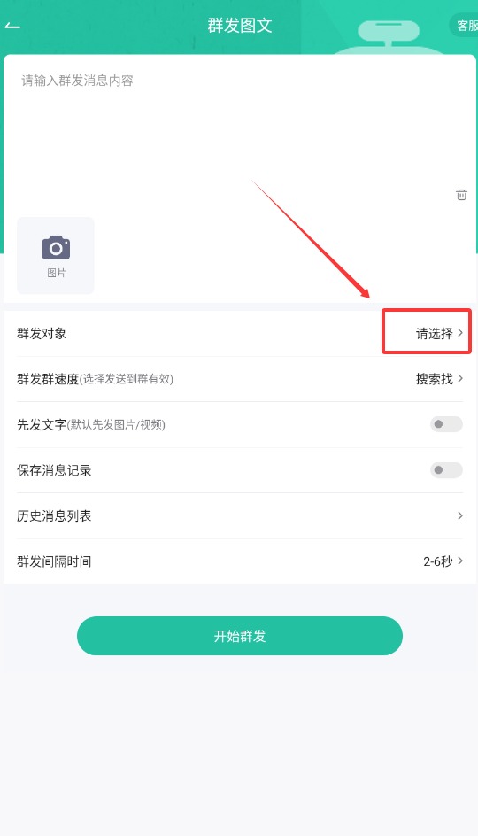 2、比如选“群发图文”,把要发的内容填好,再选要发给哪些人。