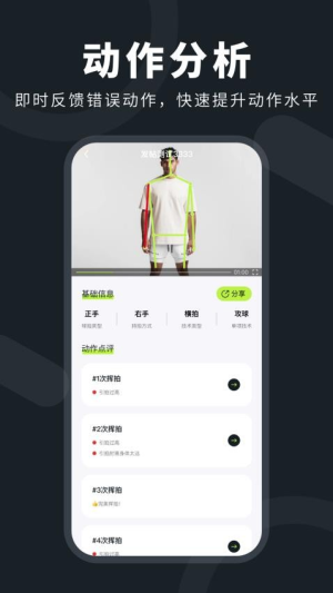 1、采用AI动作捕捉技术,通过手机摄像头实时分析挥拍轨迹与姿势。