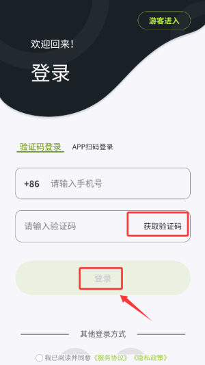 3、填写手机号后点击获取验证码,输入收到的数字即可完成登录操作。