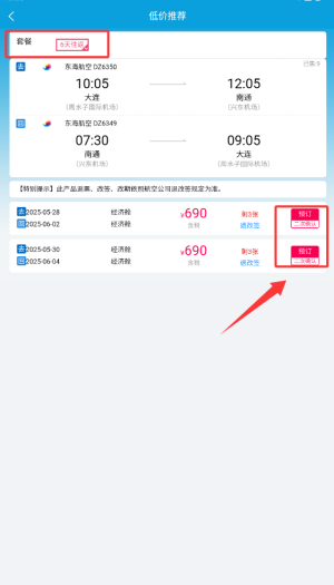 2、输入出发地、目的地及出行日期,系统将自动显示可选航班列表及实时票价。