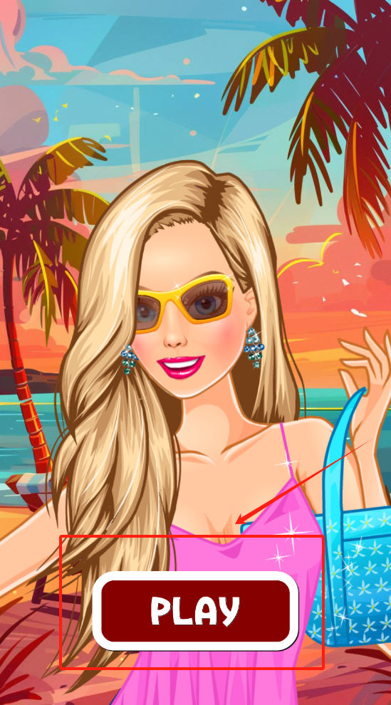 1、点画面下方红色PLAY按钮,就能开始这场海滩换装游戏啦。