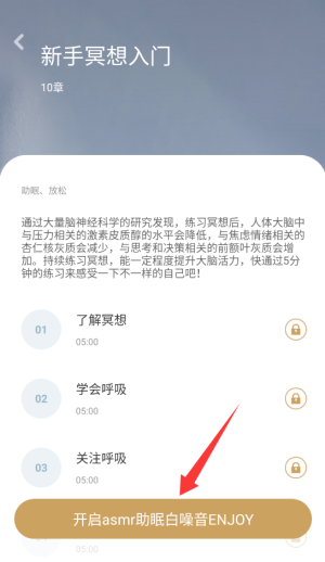 2、浏览冥想专题时,点击"新手引导"课程,学习基础的呼吸调节和放松技巧。