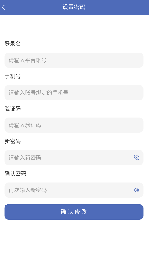 3、若遗忘密码可点击"忘记密码"链接,通过手机验证后重新设置新密码。
