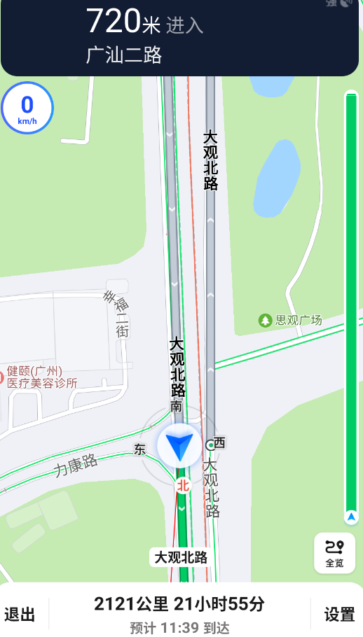 2、选择推荐路线开始导航,途中可随时查看全程概览。遇到拥堵时,系统会自动提示更优替代路线。