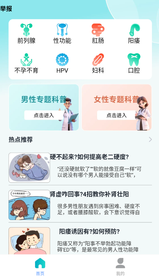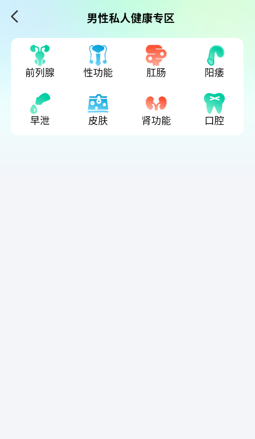 2、点击"男性健康"专区,可获取前列腺保养、性功能调理等男性专属健康知识。