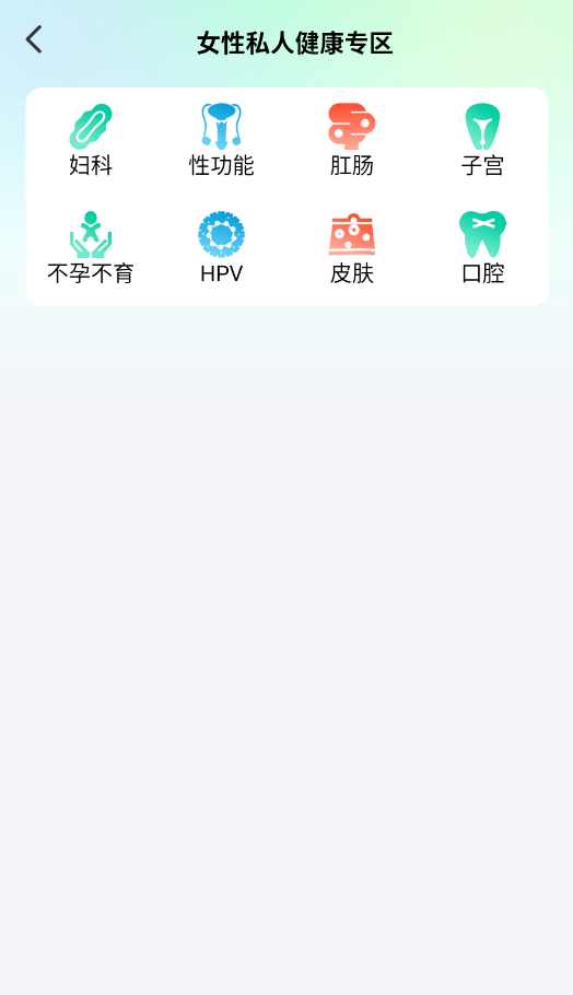 3、切换至"女性健康"板块,查看妇科保健、生理期管理等女性健康相关内容。