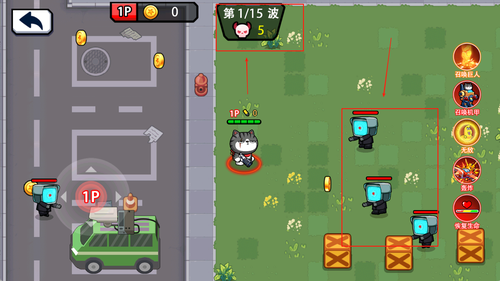 3、可操控大型机器人进行火力压制,操作简单只需控制移动与发射就能打出高额伤害迅速清理敌群。