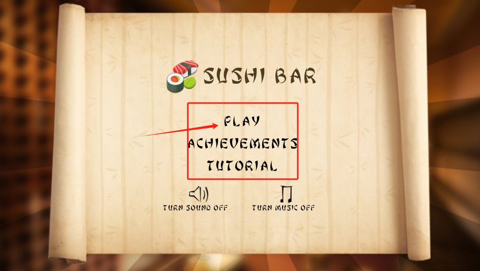 1、主界面点PLAY开始游戏,点ACHIEVEMENTS看成就,点TUTORIAL学教程,下面能关声音和音乐。
