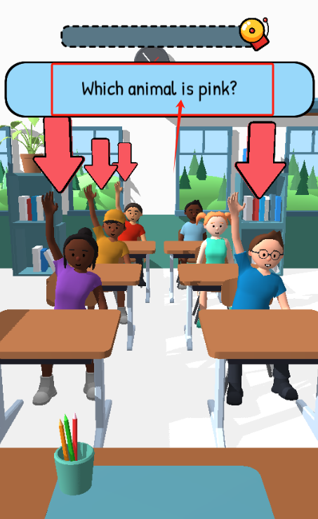 3、看蓝色牌子上的问题Which animal is pink,点举手的学生回答。