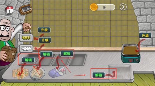 1、点击待解锁修建厨房设施,根据当前阶段选择合适的设备进行建造,增强效率,提升整体节奏感与运营能力。