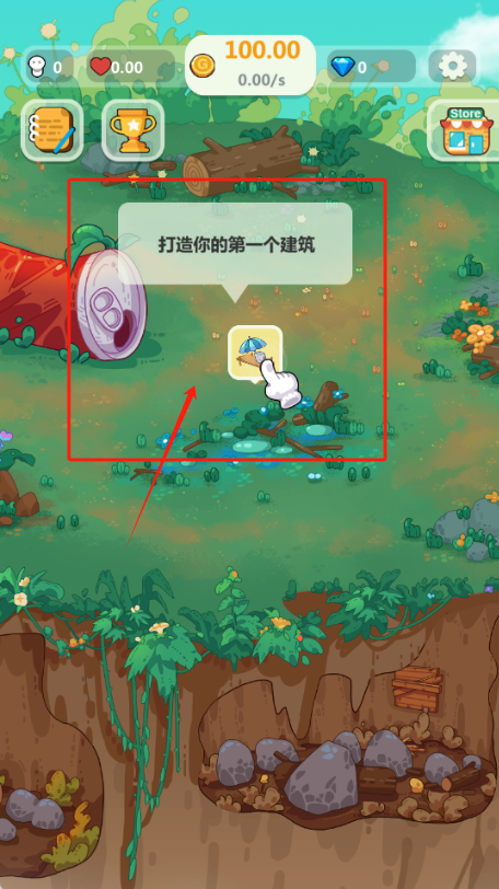 1、点打造你的第一个建筑花10000金币,现在有100金币,每秒赚0金币。