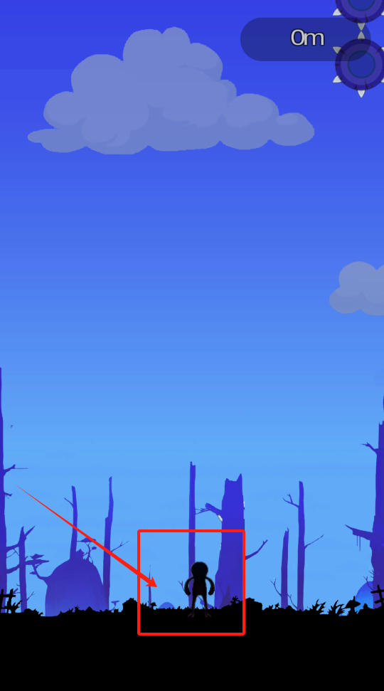 2、红框里的小人是你的角色,点击Om按钮可以暂停,齿轮图标是设置选项。