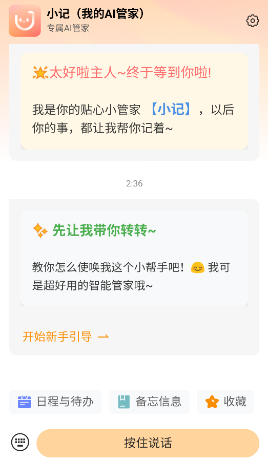 1、启动APP后,点击“AI引导”按钮,跟随互动教程学习语音/文字记录技巧。