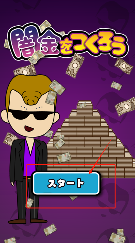 1、点蓝色按钮开始游戏,注意看背景的金字塔钱堆和飘着的纸币。