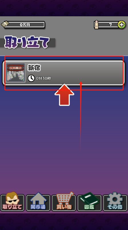 3、选中间新宿场景开始讨债任务,倒计时结束前要完成,下面按钮能买东西或看资料。