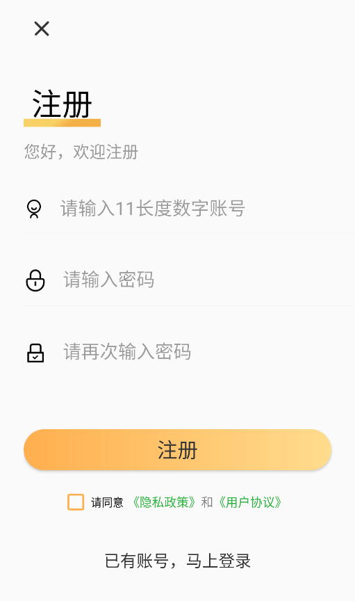 3、填写用户名、设置登录密码(需输入两次确保一致),点击提交即可完成注册(支持手机号/邮箱两种方式)。