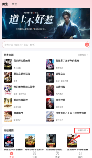 1、进入言情小说APP后,在首页导航栏选择"完结榜单"栏目,这里展示已完结的优质作品。