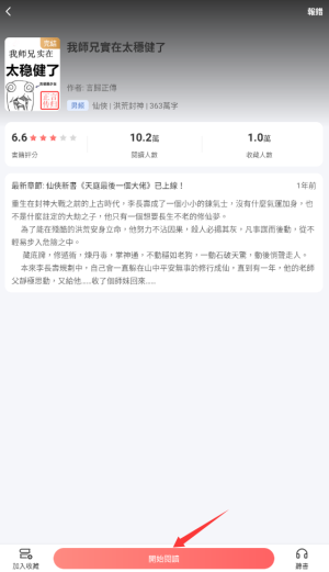 3、在书籍详情页直接点击"开始阅读"按钮,即可畅读完整小说内容。
