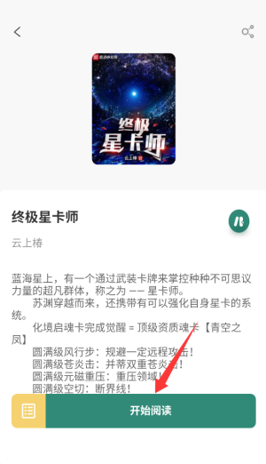 3、在书籍详情页面点击"开始阅读"按钮,即可浏览完整的小说章节内容。