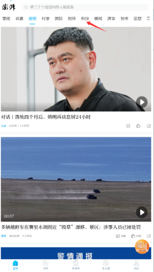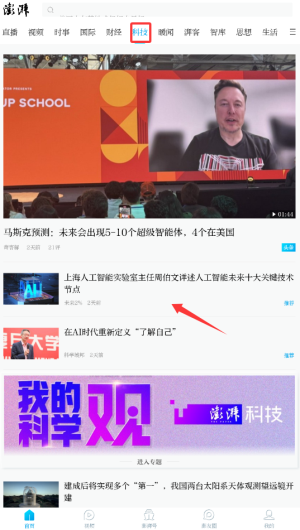1、进入澎湃新闻APP后,在首页导航栏选择"科技"频道,这里每日更新前沿科技动态。