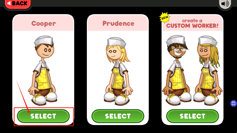 2、选一个喜欢的卡通员工,比如Prudence,然后点绿色SELECT确认。