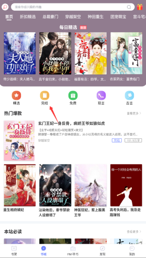 1、进入传奇书城APP后,在首页导航栏选择"完结"栏目,这里展示已完结的优质小说。