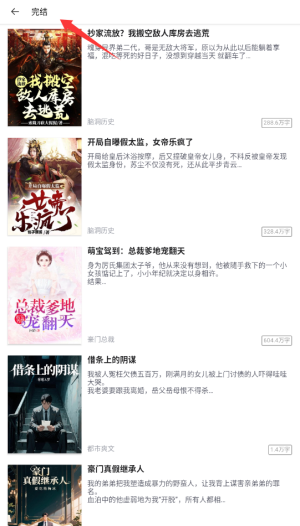 2、浏览小说列表时,可通过分类标签或评分筛选,快速找到心仪的完结作品点击封面。