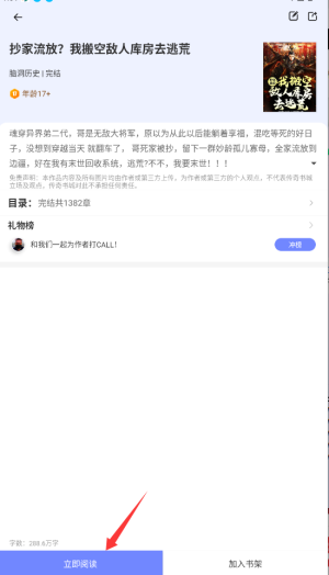 3、在书籍详情页直接点击"立即阅读"按钮,即可开始浏览完整小说内容。
