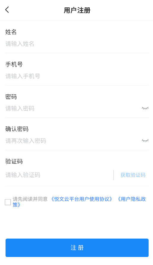2、按要求填写真实姓名、有效手机号,并设置登录密码(需二次确认),最后输入短信验证码即可完成账号注册。