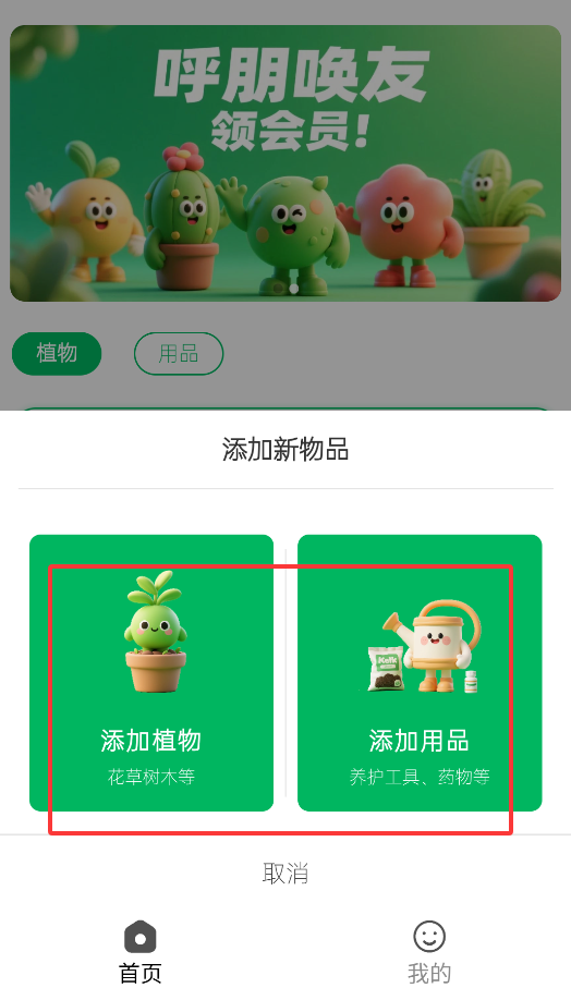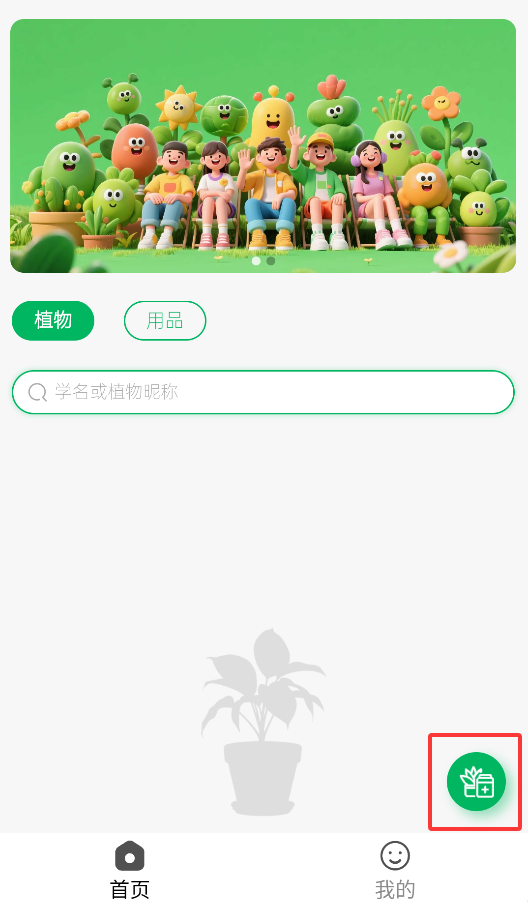 1、打开应用后,点击首页右下角的"+"按钮,进入植物管理界面开始记录你的绿植生活。