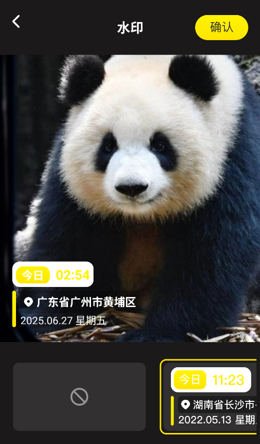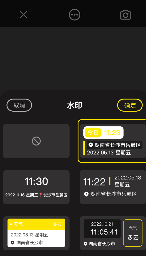 2、拍摄界面底部滑动选择水印模板(如会议纪要、旅行打卡),实时预览效果,支持调整水印透明度(30%-100%)和位置。